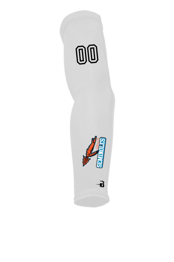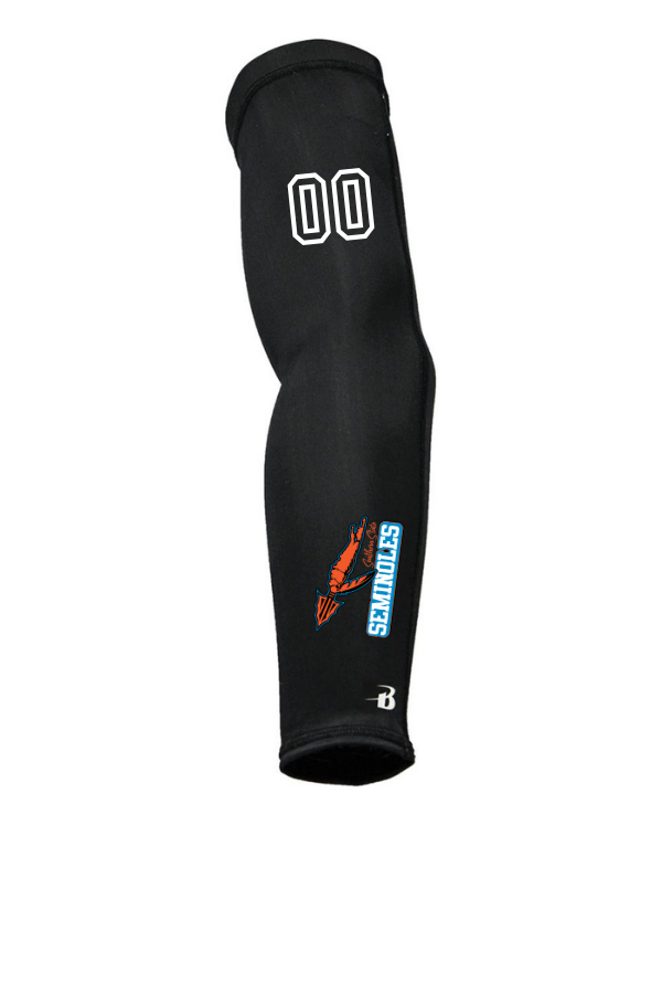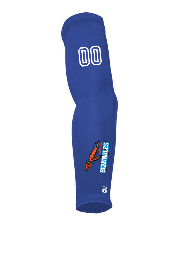 We heat press the Seminoles logo on the hand-side of this Badger Unisex Arm Sleeve available in White, Blue, or Black.
