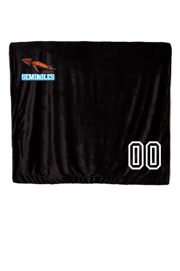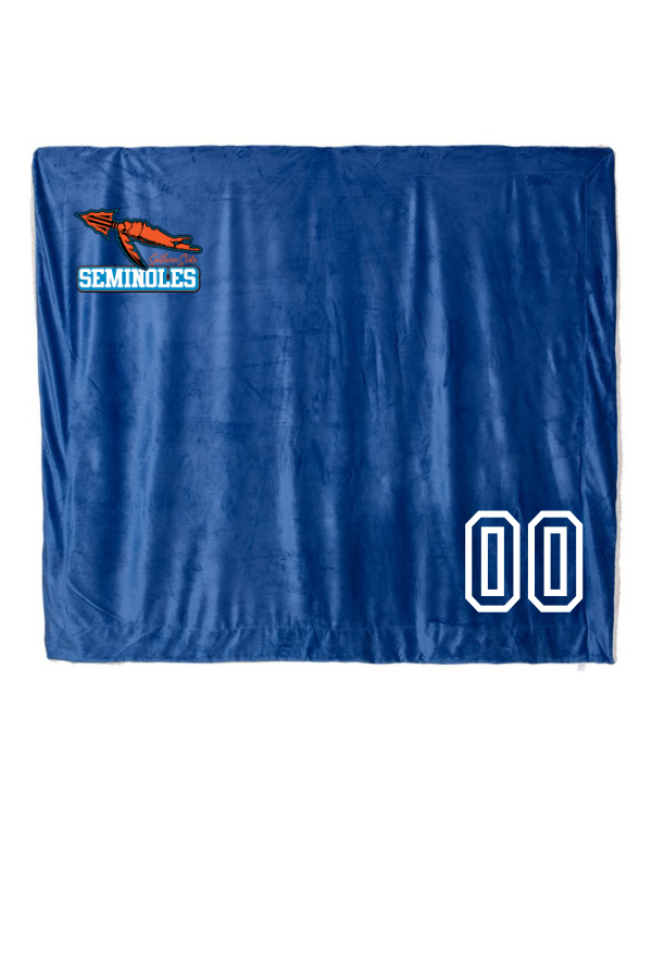 We heat press the Seminoles logo on the front corner of this Alpine Fleece Oversized Mink Sherpa Blanket available in Blue or Black.